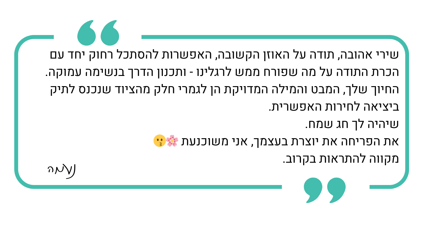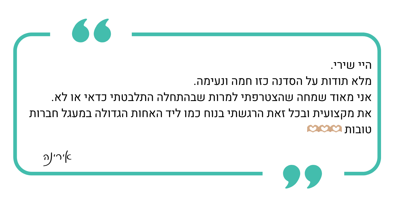 אם את לא בטוחה שהסדנה מתאימה לך, את מוזמנת ליצור איתי קשר (כאן) ונבחן יחד.