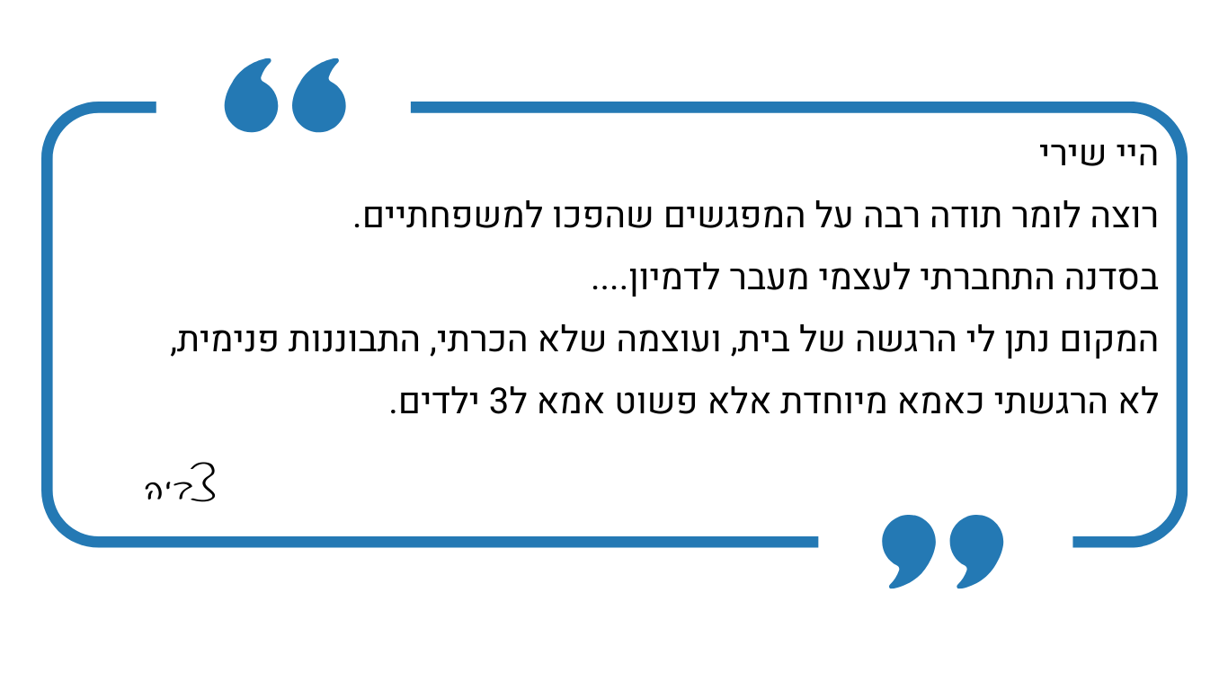 הקבוצה קטנה, בטוחה ומכילה. נוצר חיבור טבעי ורך.